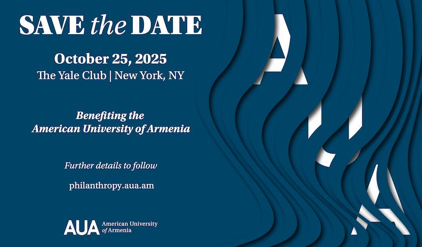 Join the American University of Armenia (AUA) for its first major gala fundraiser in New York City on October 25, 2025! The dinner program will take place at the Yale Club. Stay tuned for more details as we prepare an inspiring evening celebrating AUA's impact and future.