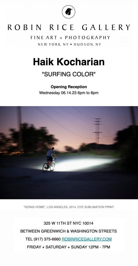 The Robin Rice Gallery is pleased to present Surfing Color, a photographic exhibition by Haik Kocharian. The opening reception will be held on June 14, 2023 from 6pm to 8pm.