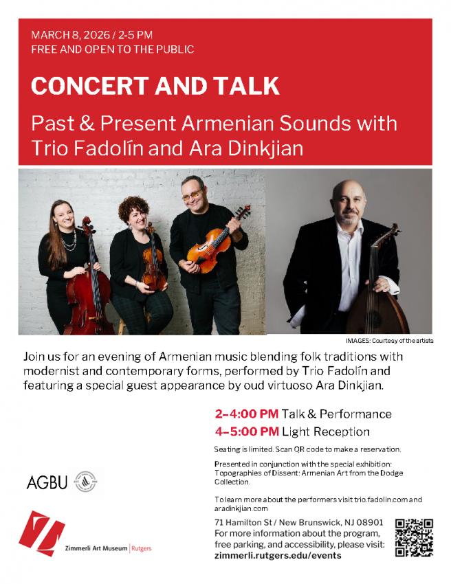 RSVP is highly recommended to guarantee a seat. This performance takes place in conjunction with the special exhibition, Topographies of Dissent: Armenian Art from the Dodge Collection.